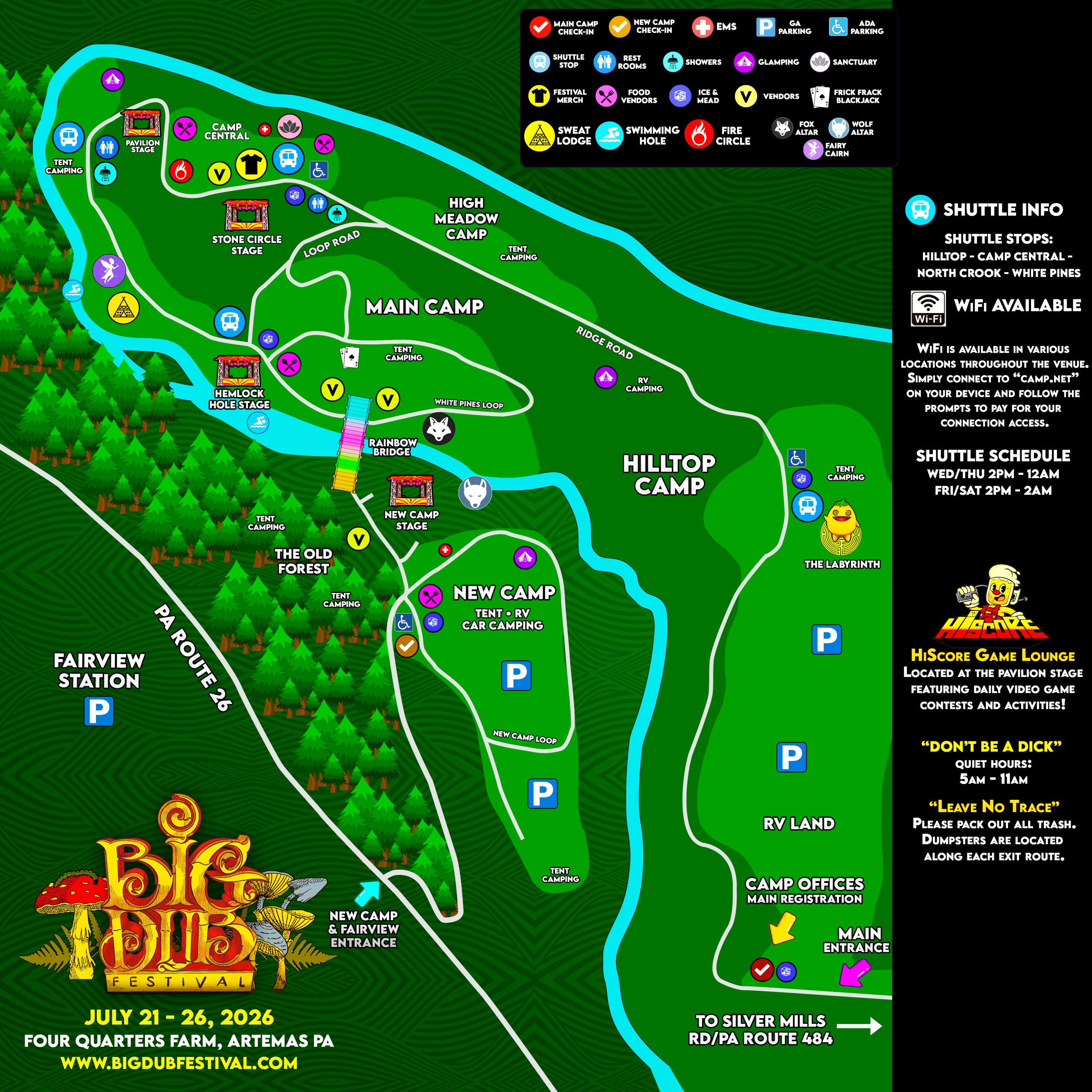 GA Parking Overflow for New Camp is located at Fairview Station (across the PA-26 from New Camp entrance). Patrons are able to drive to loading/unloading points for ease during arrival/departure.